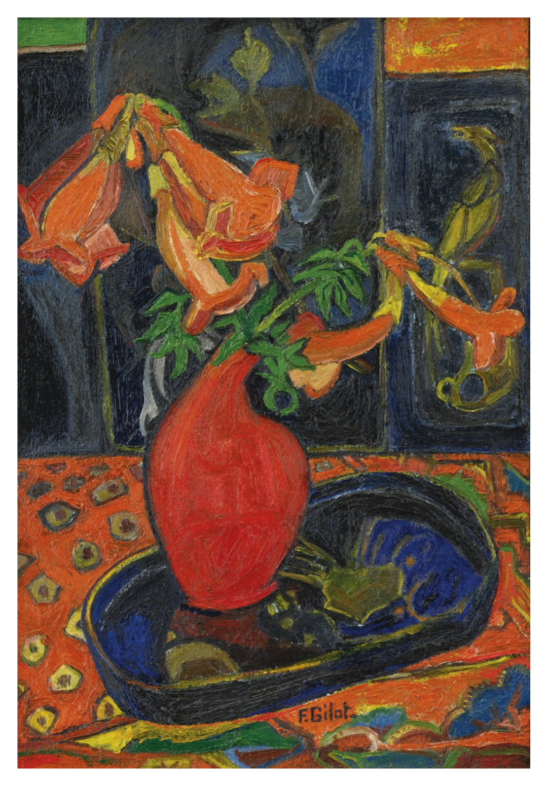Gilot’s artwork is showcased in more than a dozen leading museums including the permanent collection of the Metropolitan Museum of Art in New York and the Centre Pompidou in Paris. In 2021 her painting Paloma à la Guitare, a 1965 portrait of her daughter, sold for $1.3 million at Sotheby’s in London.