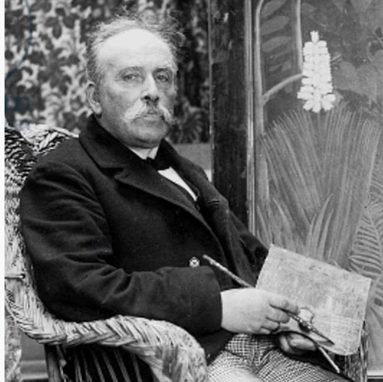 Born May 21, 1844, in Laval, France, Henri Rousseau attended the lycée there until 1860. While working for a lawyer in 1863, Rousseau was charged with petty larceny and joined the army to avoid scandal. He never saw combat and did not travel outside France, but his colleagues’ adventures in Mexico inspired him to create legends of his own foreign journeys. Upon his father’s death in 1868, Rousseau left the army. The following year he entered the Paris municipal toll-collecting service as a second-class clerk; he was never promoted although he has traditionally been called “Le Douanier” (customs officer). In 1884 Rousseau obtained a permit to sketch in the national museums. He sent two paintings to the Salon des Champs-Elysées in 1885, and from 1886 until his death, he exhibited annually at the Salon des Indépendants.