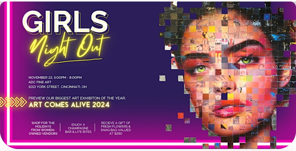 A fun night out at the beautiful ADC Gallery in Cincinnati on November 22nd 5:00-8:00 … champagne bar, light bites, and mingling!!