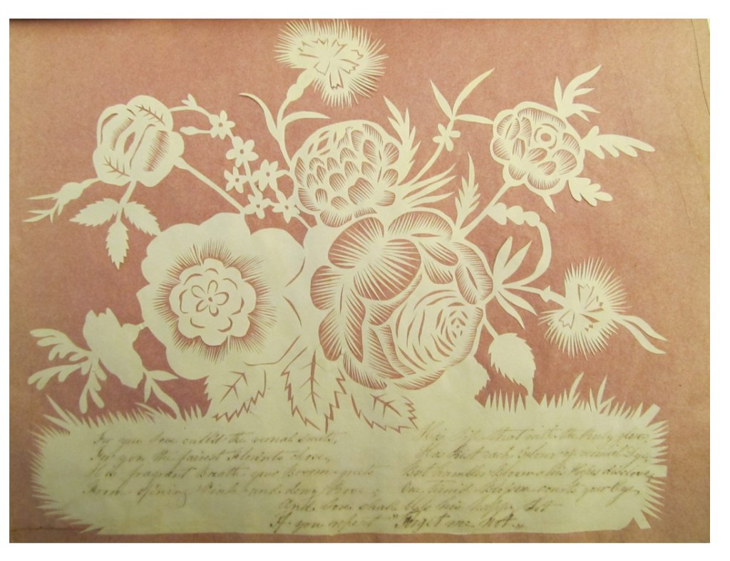 In 1806 Elizabeth Cobbold (1767-1824) and her husband John Cobbold hosted their first St Valentine’s Day ball in Ipswich, Suffolk UK. Elizabeth made papercut St Valentine’s cards for unmarried guests. Each card she inscribed with an original verse. The event became a mainstay of the social calendar, continuing for 20 years. In 1814 a collection of Mrs Cobbold’s designs and verse were published as Cliff Valentines – Cliff being the name of her house in Ipswich, located by the Cliff Brewery, started in 1723 by Thomas Cobbold (1680–1752), and is believed to be the second oldest independent brewery in England. Each card was cut from a doubled piece of paper so that there were two copies of each. “At the end of the Ball, all the ones for girls were put in one hat and all the ones for boys were put in another. Each person drew out a picture and the boy and girl who drew the same picture were officially a St. Valentine’s couple, decided by fate.”