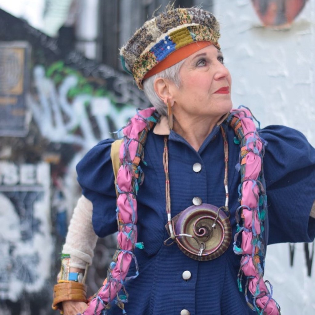She is a woman after my own heart. She crafts fabulous hats and jewelry out of what others have discarded. I love her spirit!