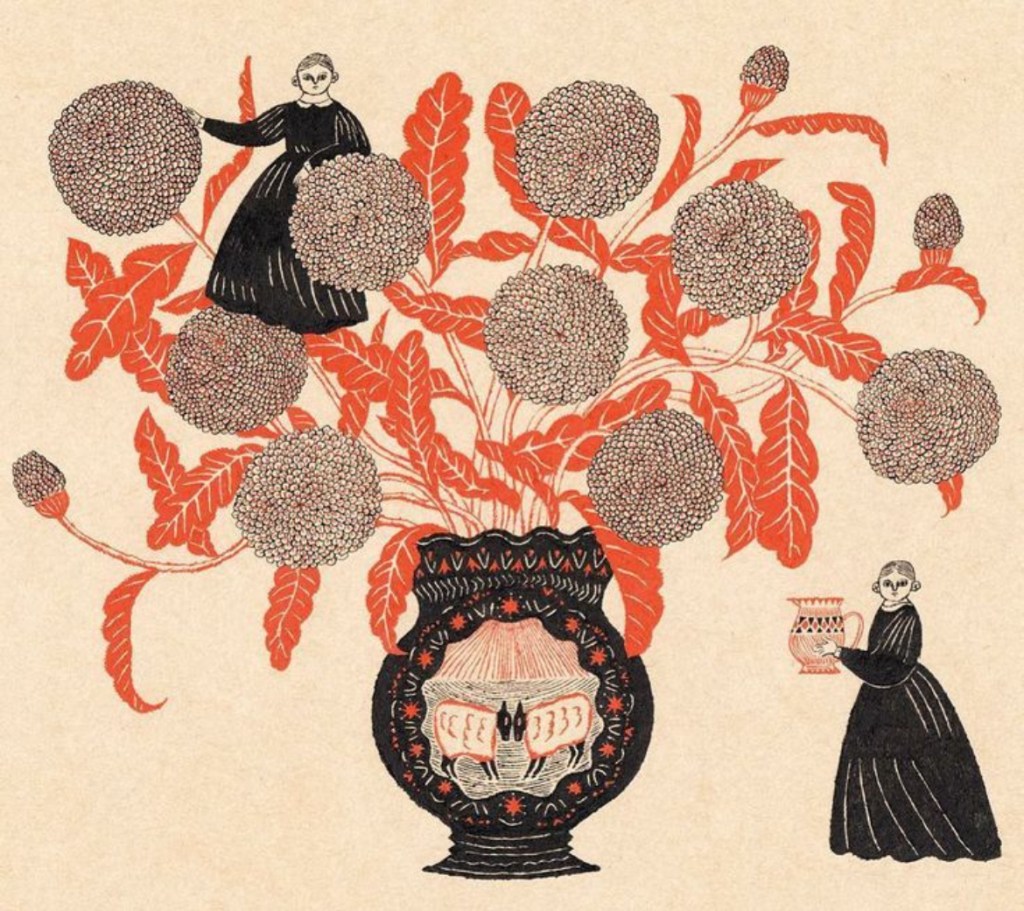 Sunae Sugimoto is an illustrator based in Kyoto, Japan. Her work uses traditional Japanese orange and black inks and fine pen work to create beautifully detailed illustrations.