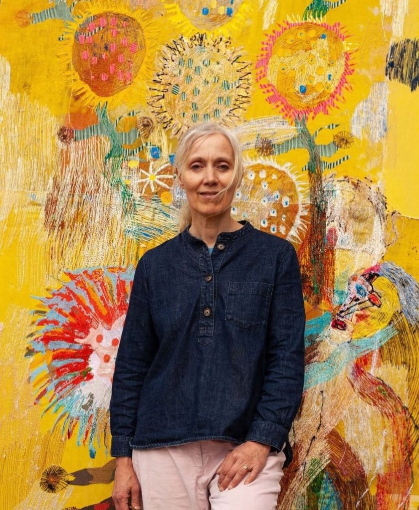 LOVING how this artist creates imagery with stitching. Love her vibrant color use and the texture the stitch work adds to her work.