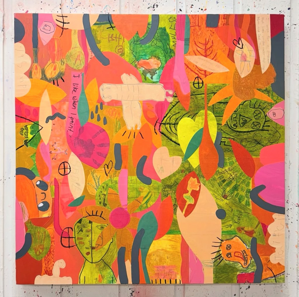 HOW CLEVER! This artist creates collage works using a mix of children’s art and color!! Wonderful idea!