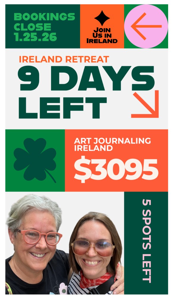 Registration closes on Jan. 25. There’s still a little time to book!! We will visit Guinness, a castle and the Ring of Kerry! And we will share our travel journal techniques!