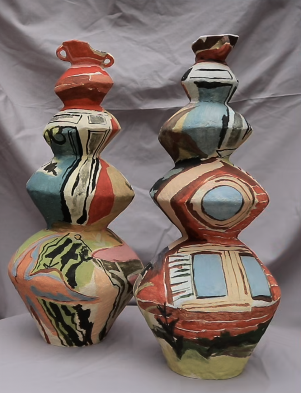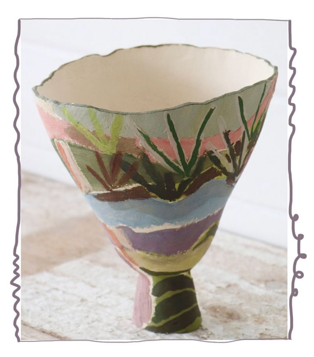 Her practice now extends beyond clay to include painting, continuing her exploration of colour and composition. Katie’s sculptures and paintings are exhibited and sold through small galleries in the South West UK and Los Angeles.