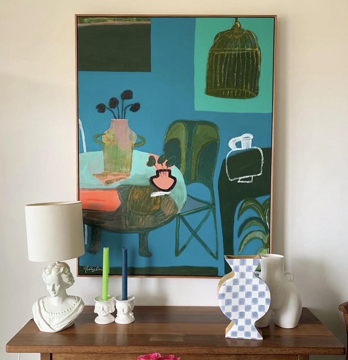 Holly Eva is a contemporary artist celebrated for her minimalist abstract still life’s and abstract figurative paintings, characterized by an intuitive, vibrant approach. Born in Camden and immersed in the surfing culture of Avoca Beach from age nine, Eva, now 48, creates daily from her studio at the Bulli Timbermill. Her work, both calming and exhilarating, reflects a profound connection to colour and an instinctive creative process.
