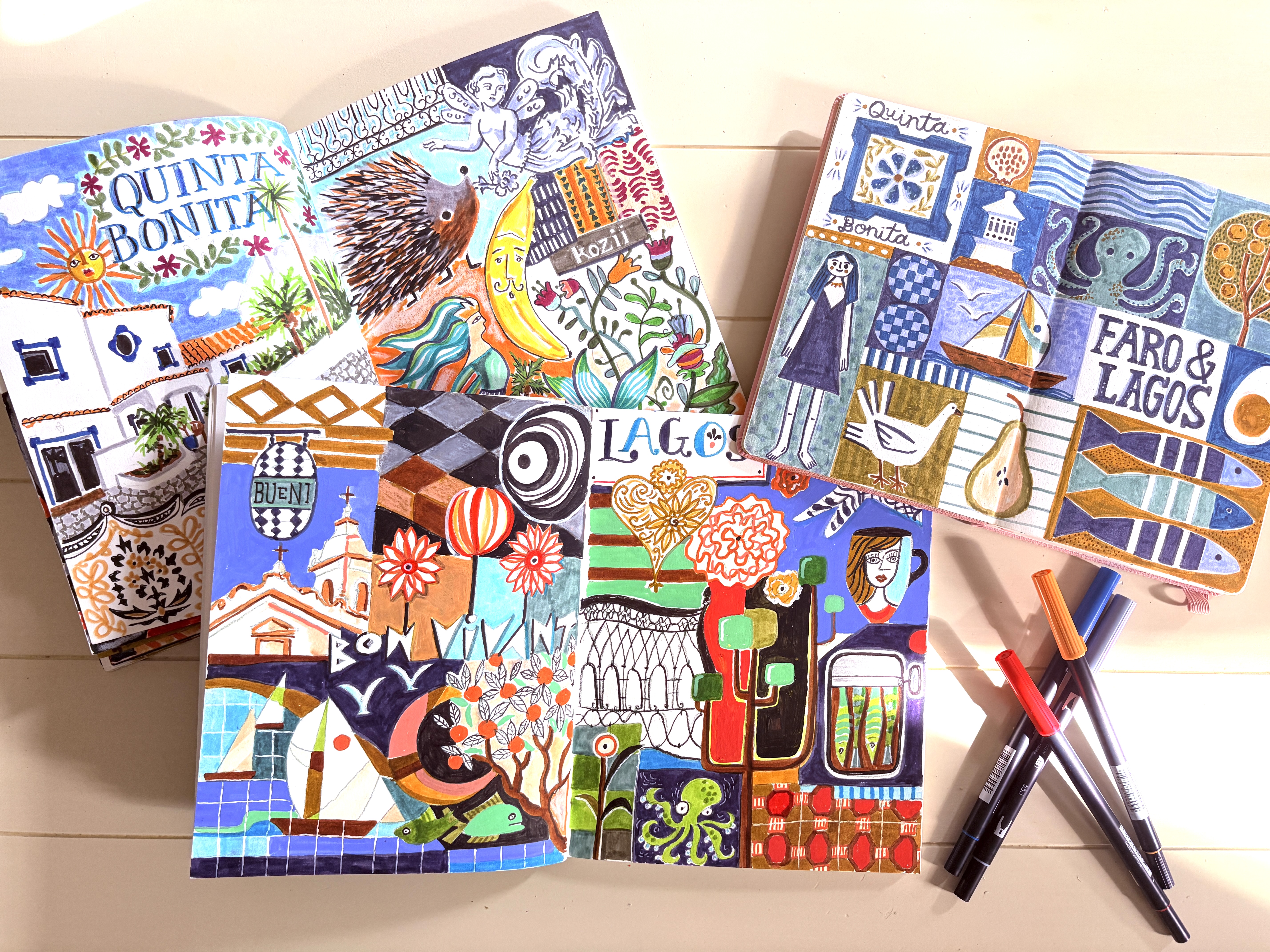 From sketching the cobblestone streets of Zante Town to capturing the dramatic coastline from a boat, every day trip feeds directly back into your journal work in the studio. We will guide you in building spreads that feel alive with personality, teaching you how to look at a place and translate what moves you into pages that tell your own unique story. By the end of the week, you will head home with a travel journal bursting with the color and spirit of Greece, a set of skills to carry into every adventure that follows, and a group of fellow artists who made the whole experience even better.