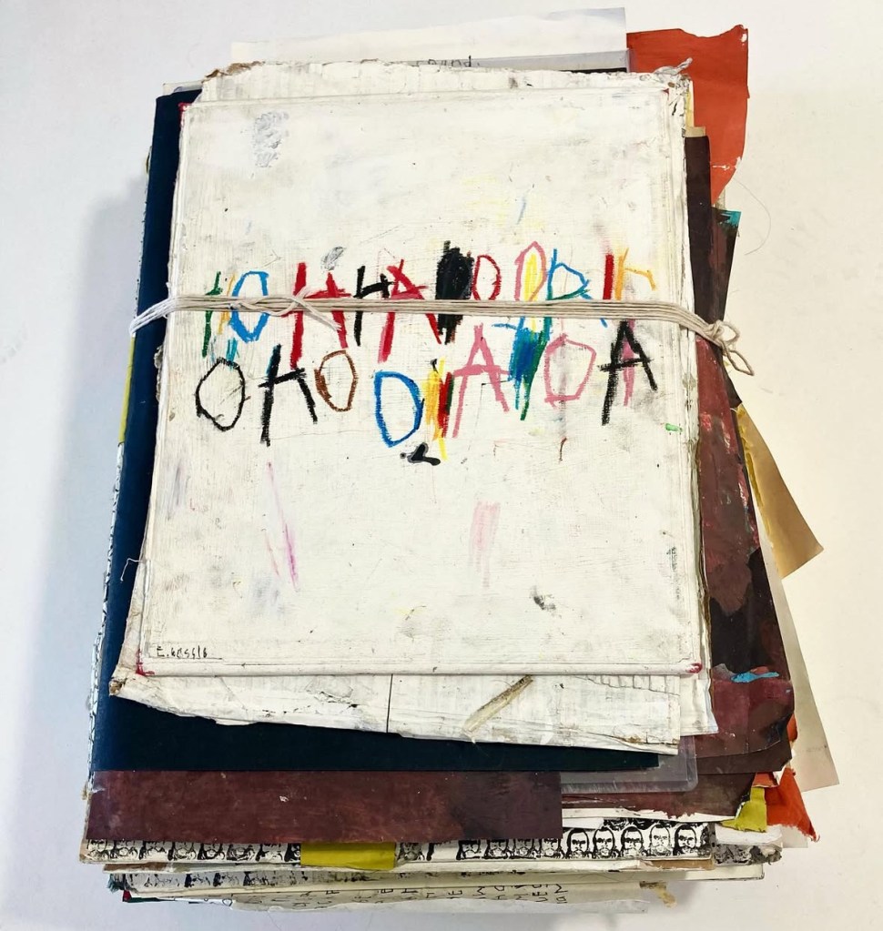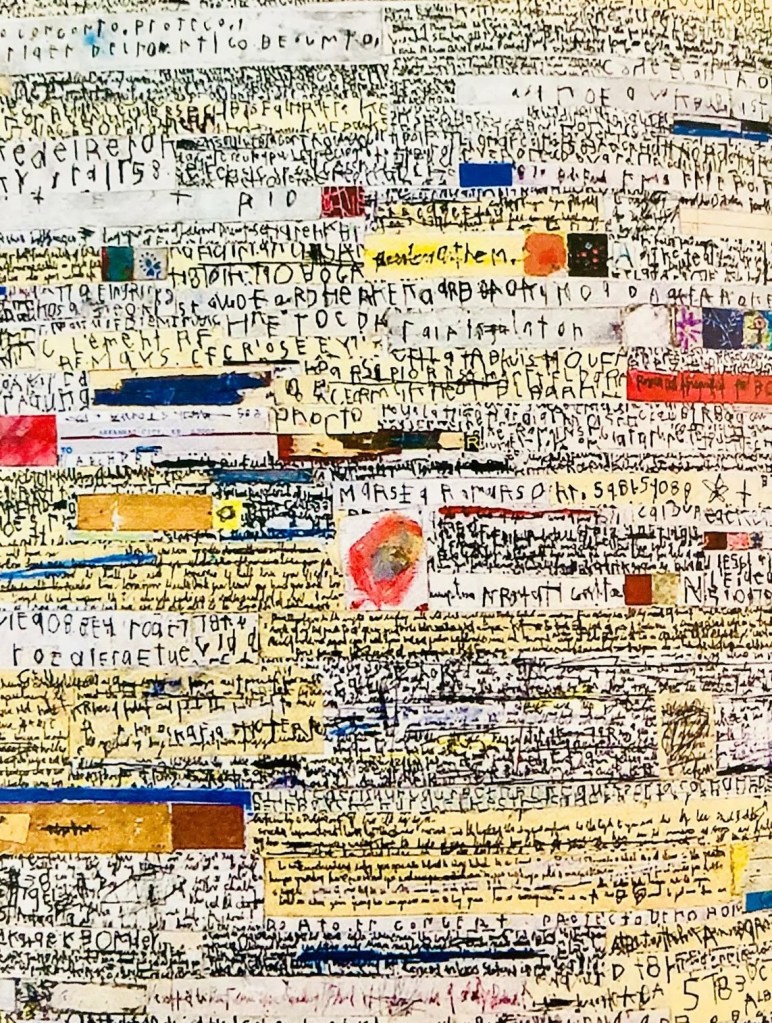 Edward Goss’s art is intentionally bold in colour and energetic in execution. His work is defined by the intricate use of collage, cut-outs, scrapings, and layered colours. His visual motifs, along with the impulse driving his brushstrokes, align with the neo-expressionist movement. His repeated use of letters across his works forms a sort of alphabet of the unconscious. Yet beyond a mere desire for repetition, his work is a constant exploration of how to recreate and reflect its impact on the world.