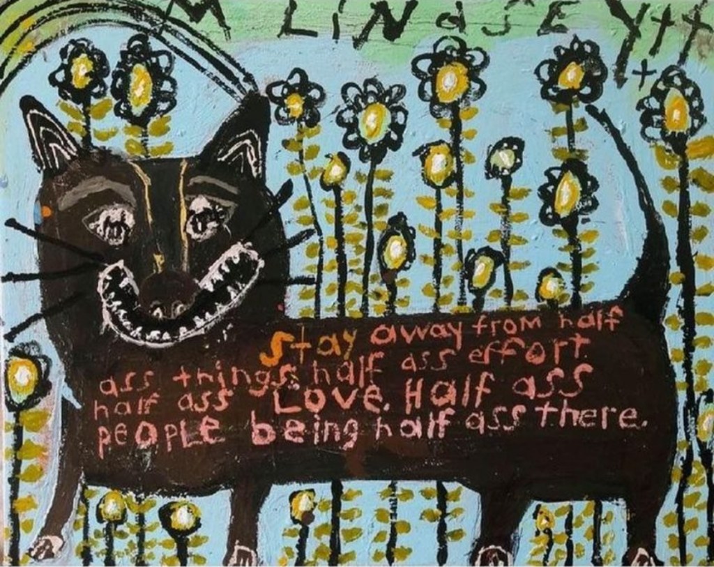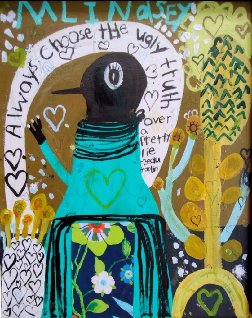 Misty Lindsey is a Chattanooga-based artist that has been represented at the Outsider Art Fair in NYC. Her work is filled with expressive characters that reveal a commentary of universal hopes and dreams, fears and worries. Her text-based work is confessional and represents the voice of the last, the lost and those that have the least.