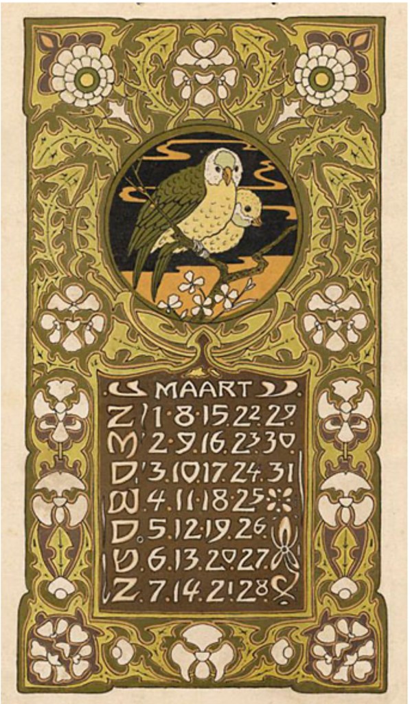 Leo Visser (1880–1950) was a Dutch artist who created a number of calendars in addition to other decorative designs featuring plants and animals. Some of these examples the earliest, combining both flora and the fauna in a series of attractive Art Nouveau plates. You don’t see monkeys very often in Art Nouveau designs, for some reason they were more popular during the Art Deco period.