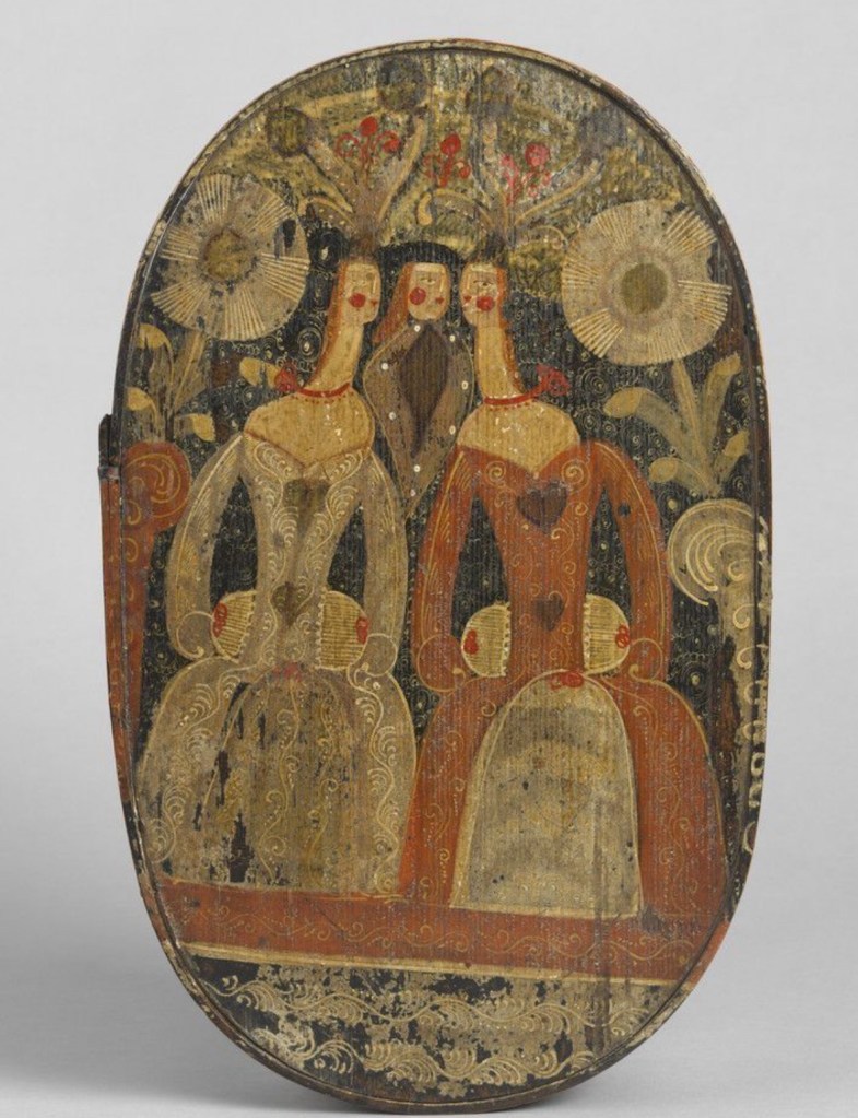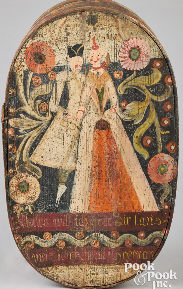In 18th and 19th century Germany and Scandinavia, bride’s boxes were given as a marriage gift to brides to hold small items in the bride’s trousseau such as linens, lace, and ribbons.