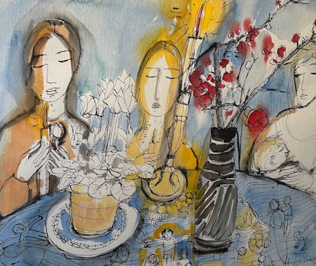 Lydia’s beautiful paintings in both oil and watercolour sparkle and take on many subjects. Her fluid lines bring new life to these familiar themes, infusing them with warmth and sunlight. Her ‘assured and gentle approach to the human figure’, as one critic put it, recalls the work of Marc Chagall.