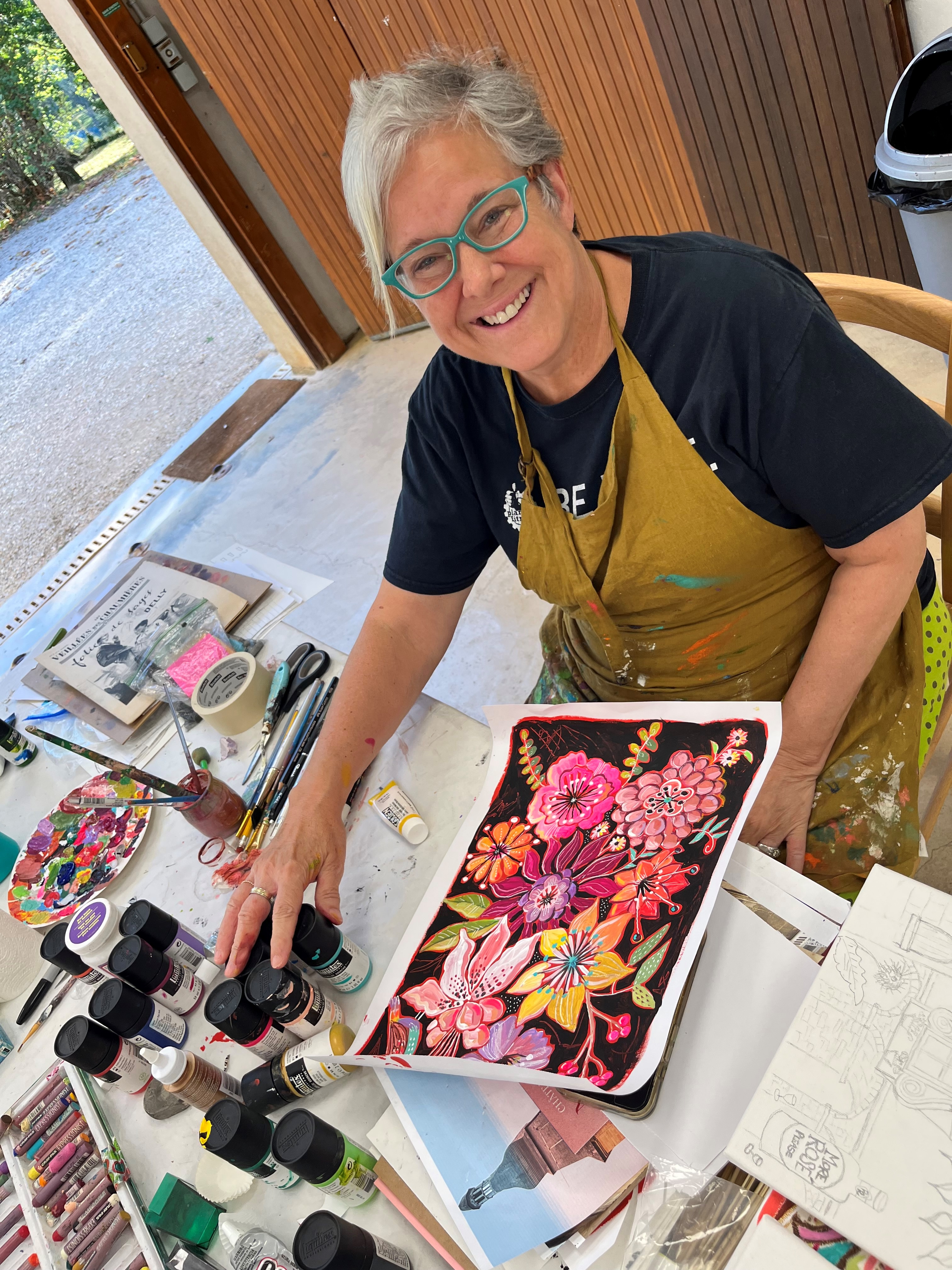 I will share my love of painting bold, loose, colorful florals in a variety of techniques and mediums. Any skill level welcome!!
