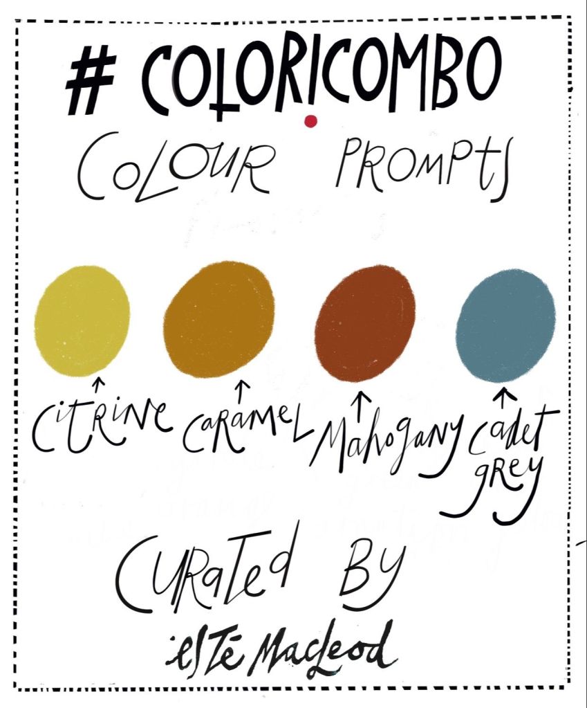 The colours for this weeks prompt are Citrine, Caramel, Mahogany and Cadet Grey.