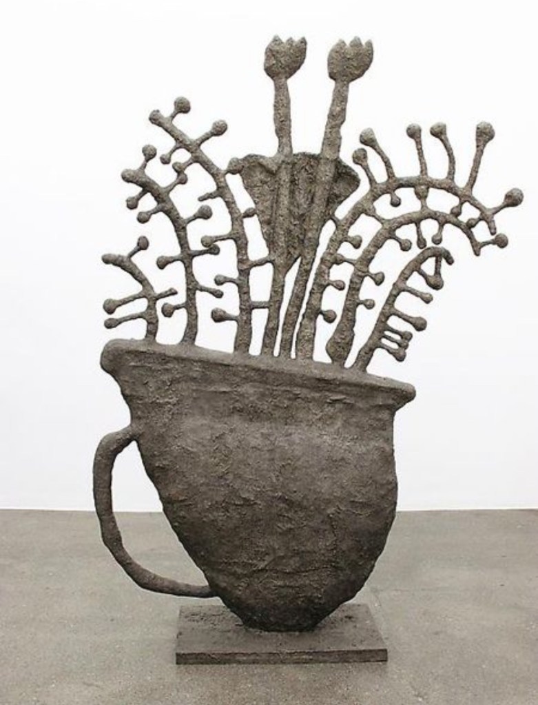 Furthering what he called his “education in public,” Baechler eventually began showing playful bronze statues of flowerpots and large-scale figures in stride. Overpainting, erasure, and intense editing—not to mention a lighthearted sense of humor—remained key to his process thoughout his career. “I’m an abstract artist before anything else,” he has said. “For me, it’s always been more about line, form, balance, and the edge of the canvas—all these silly formalist concerns—than it has been about subject matter or narrative or politics.”