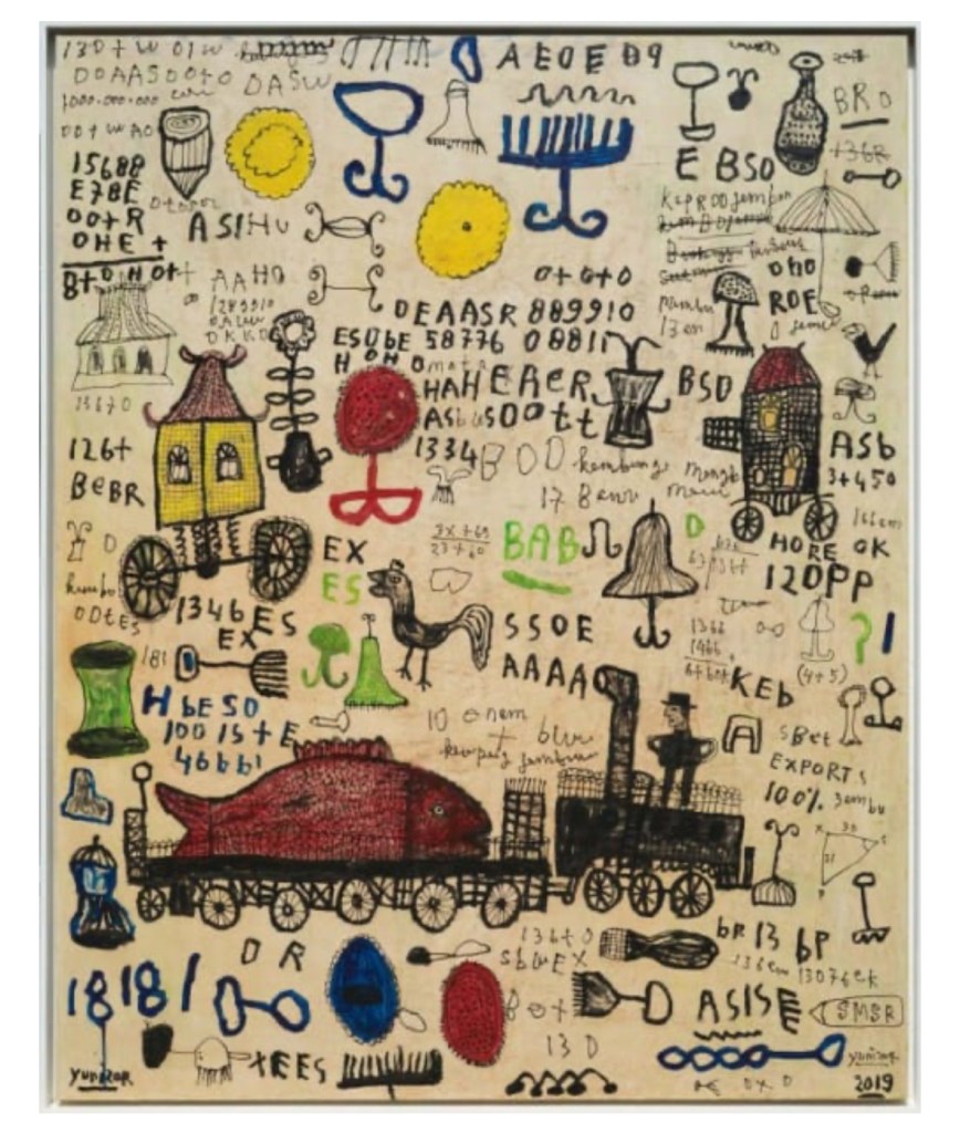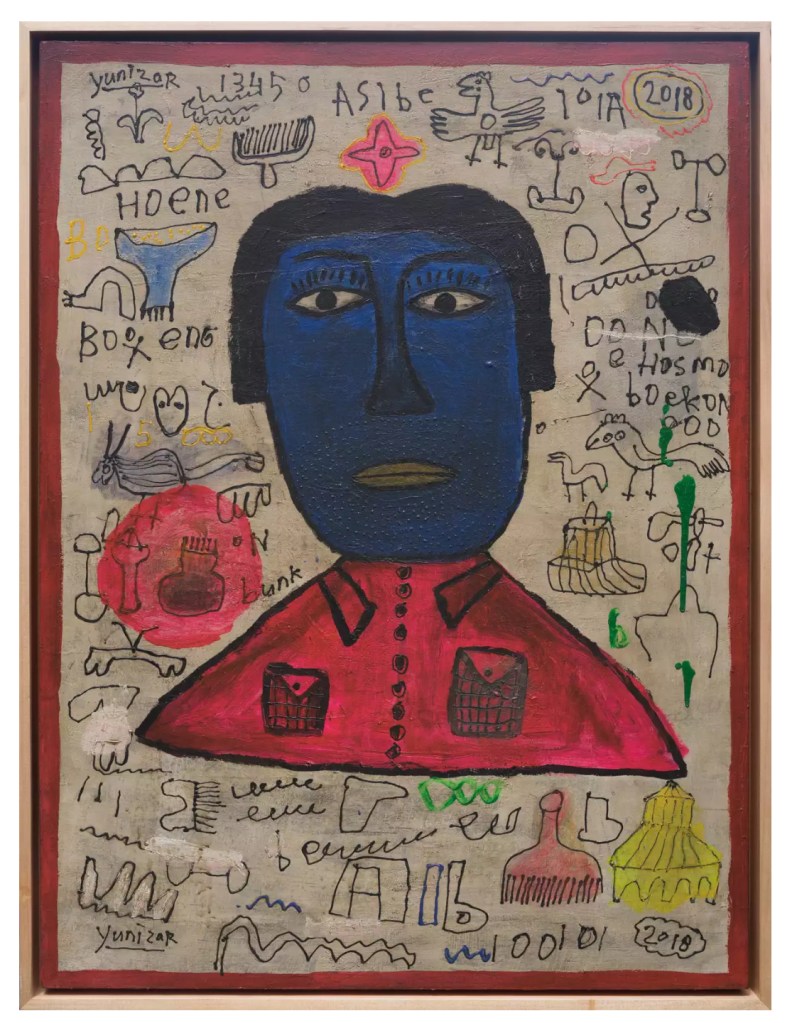 Yunizar spent his formative years at the Indonesian Institute of Arts in Yogyakarta – a school of national pride in the heart of progressive art-making in Indonesia. Yunizar’s training reveals itself in his sophisticated expressive style, articulated through a playful composition and subtle palette. Executed primarily in acrylic and pencil, his works stand out in terms of texture, colour, brushwork and rhythm. A restrained palette of cool colours – yellows, browns and greens- is deliberately dirtied and smudged in his working and reworking of the canvas. The result is a highly tactile work that entices the viewer to feel the piece.